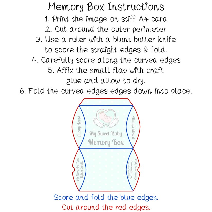 Voila, a beautiful memory box for you to fill in memory of your precious baby!